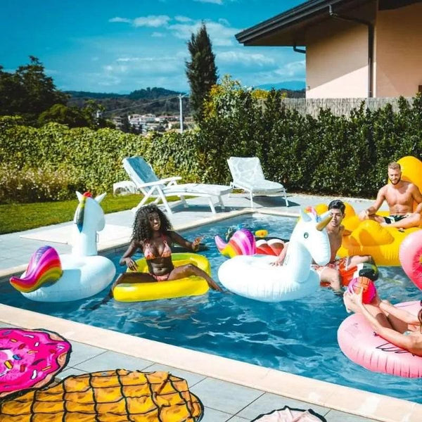 But if you're still flying solo, this large inflatable unicorn float is the perfect gift idea for a successful pool party in the heart of summer. Women and girls (and even men) will fall under the charm of this new kind of giant inflatable unicorn.